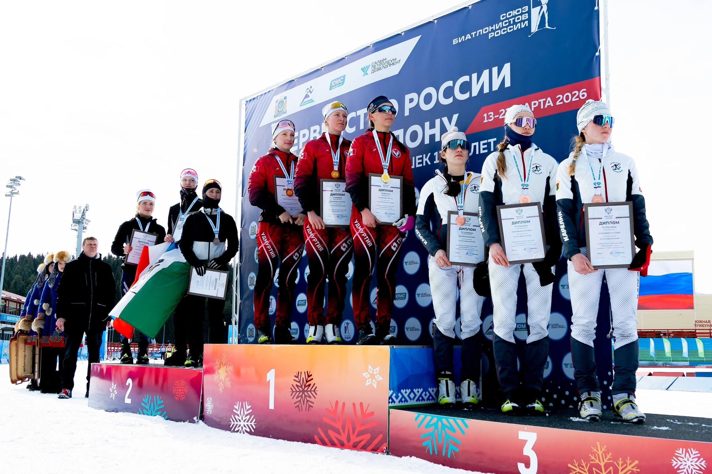 Команда биатлонисток СШОР СКА Петрозаводска стала бронзовым призером в эстафете на Первенстве России по биатлону в Ханты-Мансийске